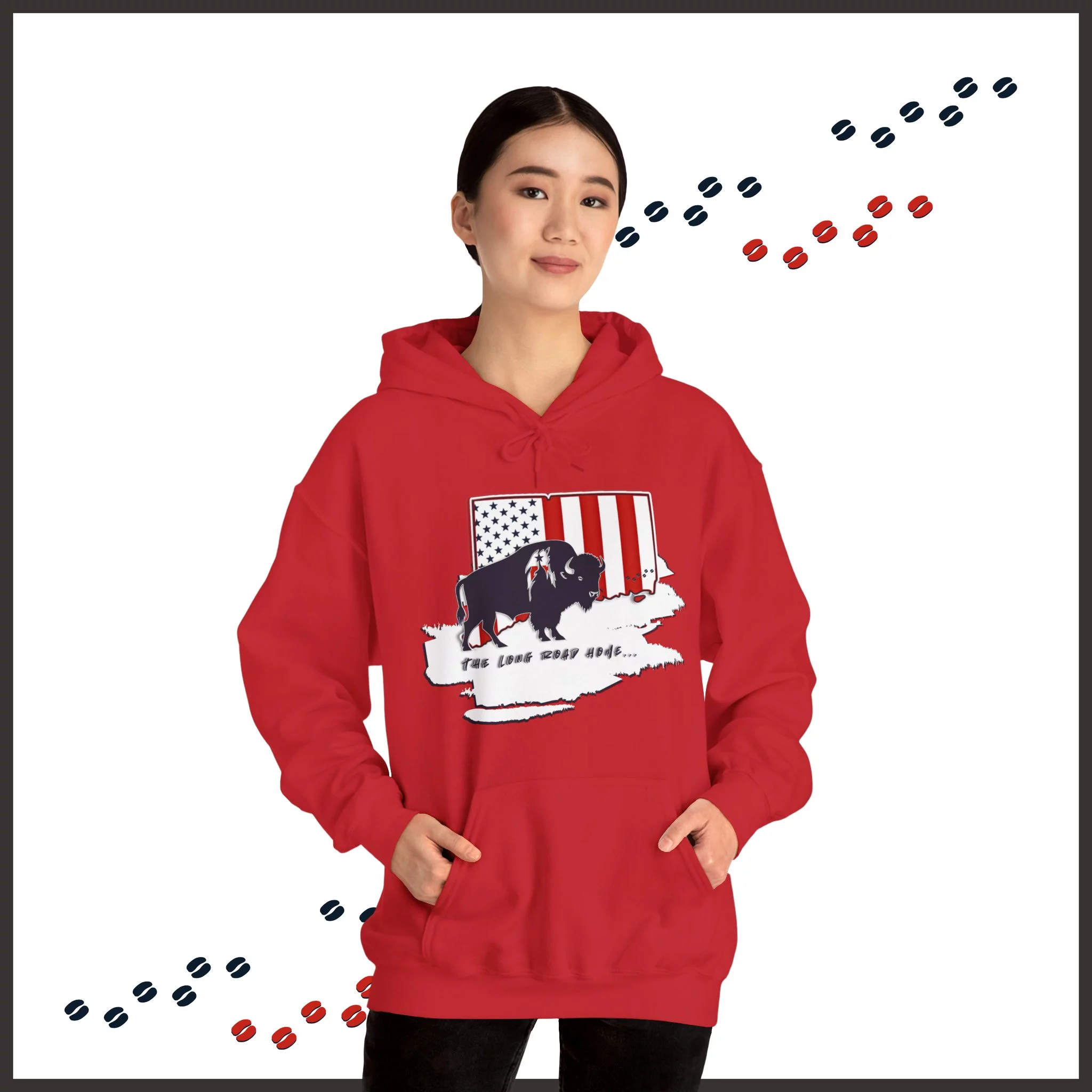 This unisex heavy blend hooded sweatshirt is relaxation itself. Made with a thick blend of cotton and polyester, it feels plush, soft and warm, a perfect choice for any cold day. In the front, the spacious kangaroo pocket adds daily practicality while the hood’s drawstring is the same color as the base sweater for extra style points.